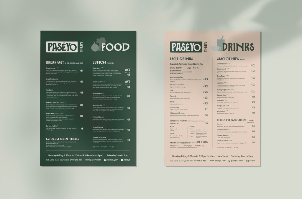 Paseyo’s desired rebrand perception: Paseyo’s new brand identity will incorporate the strongest elements of its old brand – healthy, wholesome and affordable food with a strong focus on community; and introduce a more current and youthful visual aesthetic to help attract the areas of the Mullumbimby cafe-going market it is currently not reaching. It will present as an aesthetic cafe location to get food, smoothies and coffee etc. for both the current clientele (which already love Paseyo) and the younger demographic of the Byron Shire.